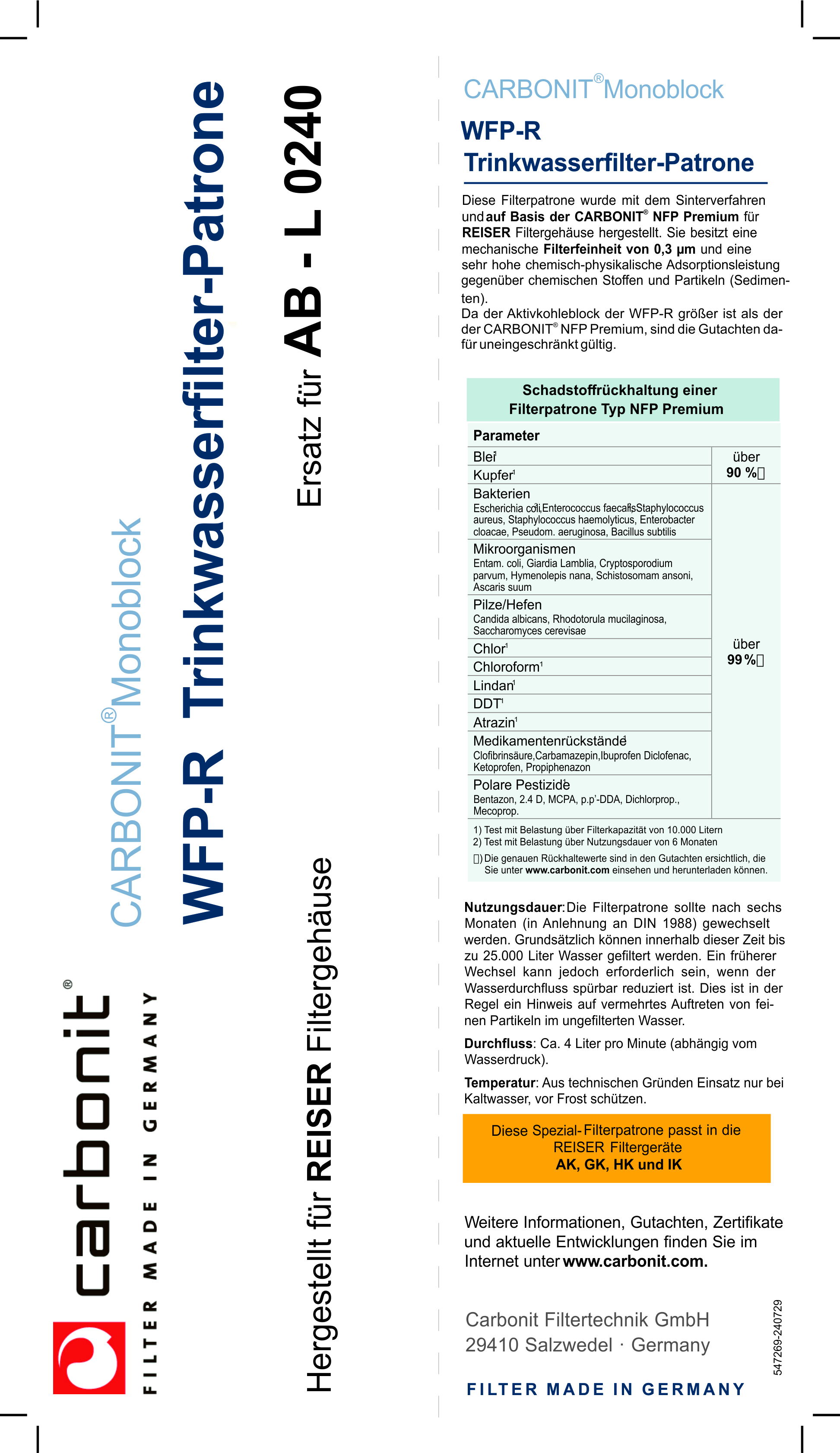 Datenblätter & Infos "0,3µ Kohlefilter, für Reiser Untertisch Filtergehäuse, 14mm Nippel, 20 Zoll "