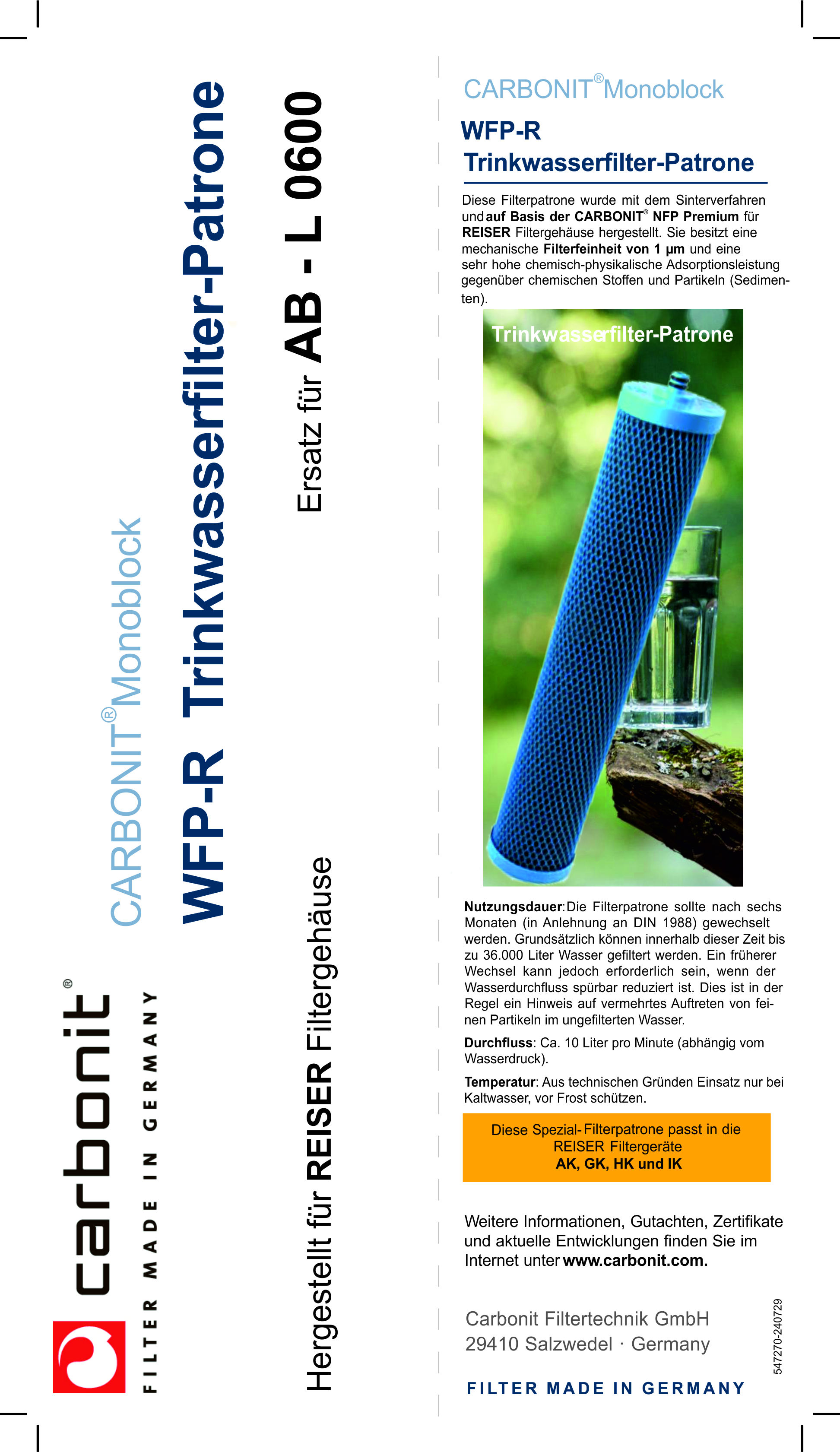Datenblätter & Infos "1µ Kohlefilter, für Reiser Untertisch Filtergehäuse, 14mm Nippel, 20 Zoll"