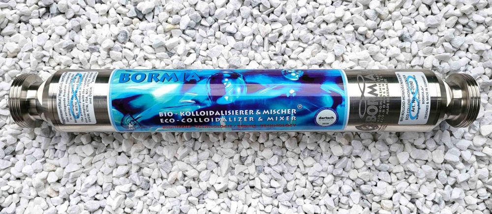 Der Bormia Bio-Kolloidalisierer ist ein Umstülpverfahren und funktioniert einfach so, wie die Natur es macht. Das Wirkprinzip ist komplex und wird an anderer Stelle genauer beschrieben. Kurz, in einem Satz gesagt: „Es baut Harmonie im Produkt auf!“, und das in nur einem Prozess-Schritt. Das entstandene Produkt wird kolloidal und liegt im Trend des ‚functional-, raw-, super- und vital-food‘ Gedankens, mit hoher Bio-Verfügbarkeit und natürlicher verdoppelter Haltbarkeit... denn Struktur erzeugt Stabilität!